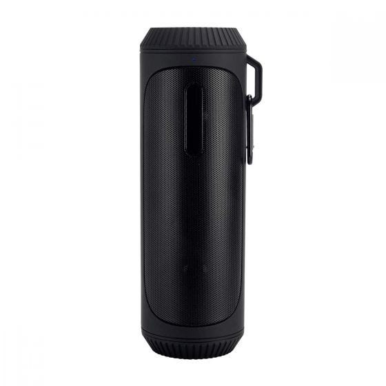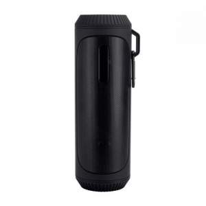 Bocina bluetooth con batería recargable de 6 horas de reproducción. Controles integrados de llamada, volumen y reproducción de audio. Reproducción de tarjeta microSD y memoria USB, modo radio FM, función manos libres. Linterna de un led, cable cargador USB y carabina.