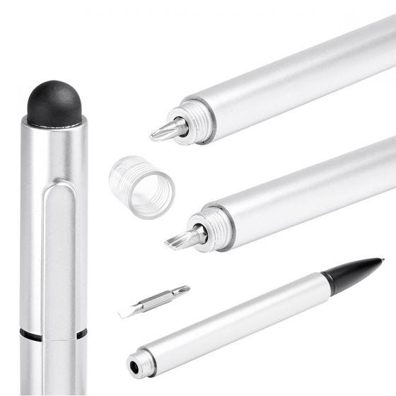 Bolígrafo con touch screen. Incluye 2 diferentes puntas de desarmador (1 punta de cruz y 1 punta plana).