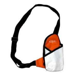CON DOS COLORES, CINTA AJUSTABLE, ESPACIO PARA BOTELLA Y CIERRE LATERAL.