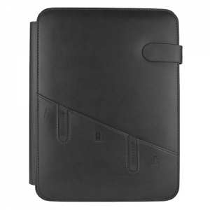 Descripción: CARPETA NAUSSAC (Cubierta con compartimento para bolígrafo, smartphone y audífonos. Incluye block de notas A5 con 20 hojas, compartimentos para tarjetas y documentos, soporte para tablet y minitablet. Batería auxiliar para smartphone con capacidad 5000 mAh. Cable adaptador compatible con 8 pin y micro USB. Broche magnético.)