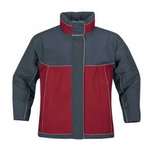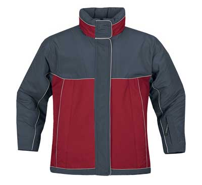 CHAMARRA CON VIVOS. NYLON Y POLIESTER CON DOS COLORES, CIERRE Y BOTONES AL FRENTE.
