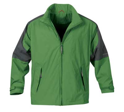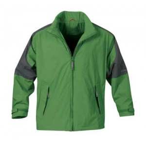 NYLON Y POLIESTER CON DOS COLORES, VIVOS EN LAS MANGAS, CIERRE AL FRENTE Y EN BOLSAS LATERALES.