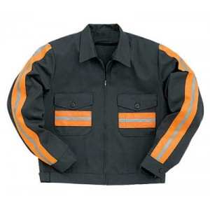 CHAMARRA STANDARD NYLON Y POLIESTER CON UN COLOR, VIVOS EN LAS MANGAS Y EN LAS BOLSAS Y REFLEJANTE, BOLSAS EN EL PECHO CON BOTONES.