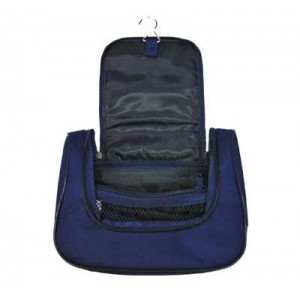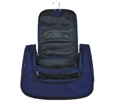 COSMETIQUERA CON GANCHO NYLON Y POLIESTER CON UN COLOR, TAPA ON CIERRE, COMPARTIMENTO INTERIOR CON MALLA, GANCHO EN TAPA.