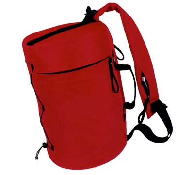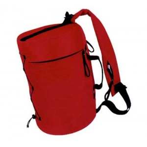 COSTAL DE MALLA NYLON Y POLIESTER CON UN COLOR, CON FORMA CILINDRICA, BOLSA LATERAL CON CIERRE, AGARRADERAS, UN ASA CRUZADA CIERRE SUPERIOR.