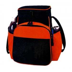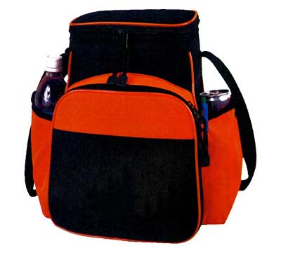 MORRAL NYLON Y POLIESTER CON DOS COLORES, CON CIERRE SUPERIOR, BOLSAS A LOS LADOS PARA BEBIDAS Y BOLSA DELANTERA.