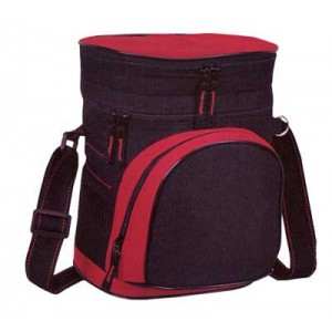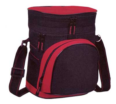 HIELERA CON BOLSA NYLON Y POLIESTER CON DOS COLORES, DOBLE COMPARTIMENTO, BOLSA DELANTERA CON CIERRE.