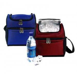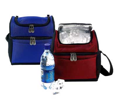HIELERA DOBLE COMPARTIMENTO NYLON Y POLIESTER CON UN COLOR, 2 COMPARIMENTOS Y CINTA.