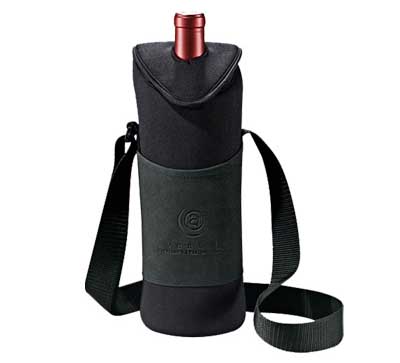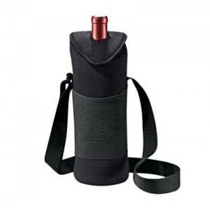 HIELERA PARA VINO NYLON Y POLIESTER CON DOS COLORES, CINTA, TAPA SUPERIOR CON VELCRO Y ESPACIO PARA QUE SALGA LA BOQUILLA.