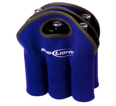 HIELERA PARA CERVEZAS NYLON Y POLIESTER CON UN COLOR Y VIVOS, ESPACIO PARA SEIS BOTELLAS.
