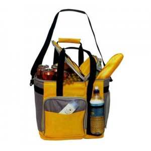 HIELERA TIPO BOLSA NYLON Y POLIESTER ON DOS COLORES DOBLE ASA TIPO BOLSA, CINTA BOLSA DELANTER CON CIERRE Y BOLSA DE MALLA PARA BEBIDAS.