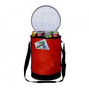 HIELERA TIPO CILINDRO NYLON Y POLIESTER CON DOS COLORES, CINTA Y CIERRE SUPERIOR.