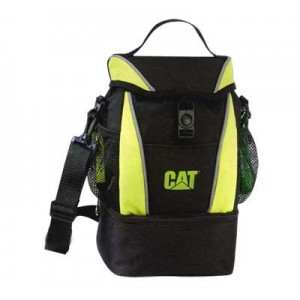 HIELERA TIPO MOCHILA NYLON Y POLIESTER CON DOS COLORES Y REFLEJANTE, TAPA CON BROCHE, COMPARTIMENTO ABAJO PARA, SIX PACK Y BOLSAS LATERALES DE MALLA.
