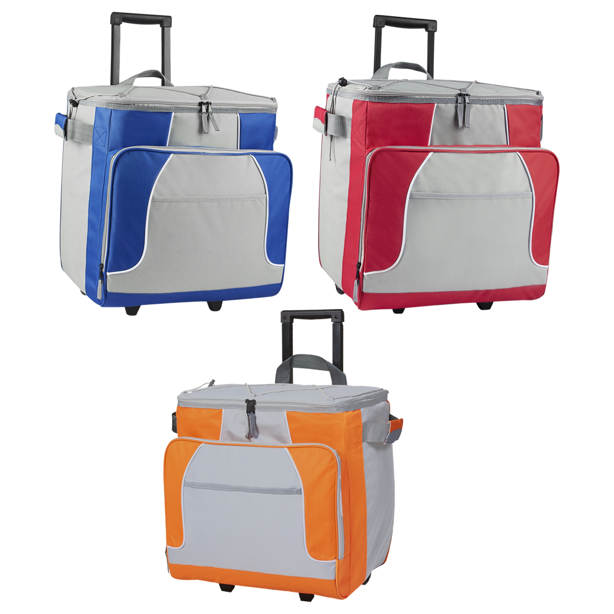 | Descripción: HIELERA TROLLEY OSLO (Interior plastificado impermeable. Bolsa frontal y 2 compartimentos con cierre. Agarraderas laterales. Mecanismo trolley.) |