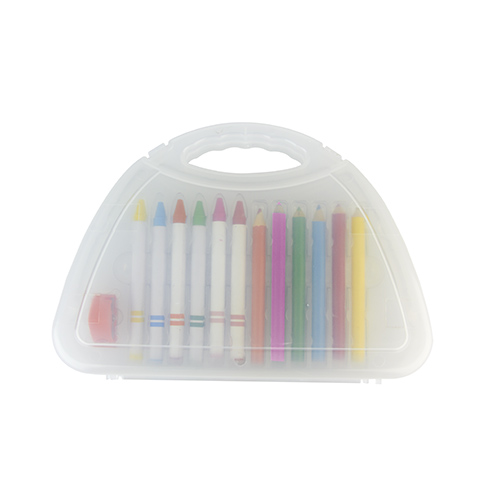 Descripción: KIT ESCOLAR DRAWING (Incluye sacapuntas, 6 crayones y 6 colores.)