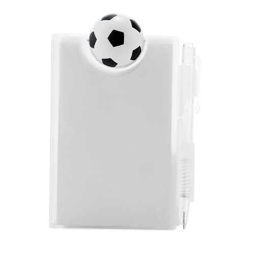 Descripción: LIBRETA CON BALóN (Incluye bolígrafo tinta negra y mini balón de soccer giratorio.)