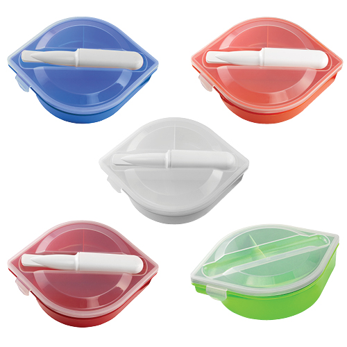 Descripción: LONCHERA BENTO (Incluye portacubiertos con cuchara, tenedor y cuchillo. 3 Compartimentos.)