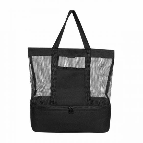 2 Bolsas frontales. Compartimento superior con cierre, interior metalizado y compartimento pequeño con red.