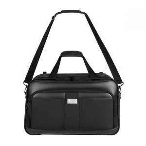 Bolsa principal y frontal con cierre. Placa metálica removible para fácil grabado. Incluye correa ajustable.