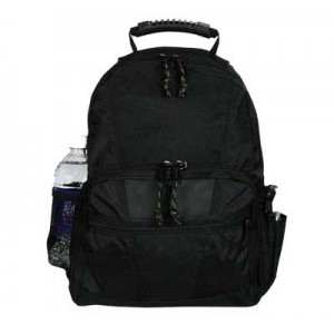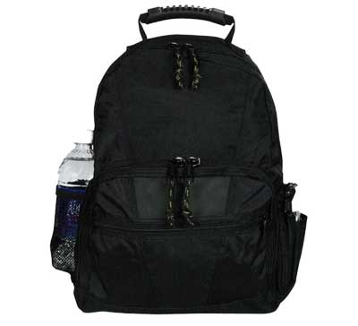 MOCHILA NYLON Y POLIESTER CON UN COLOR, CON AGARRADERA DE PLASTICO DOS BOLSAS FRONTALES CON CIERRE Y DOS BOLSAS LATERALES DE MALLA.