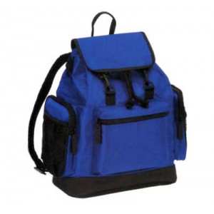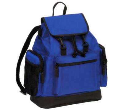 MOCHILA NYLON Y POLIESTER CON UN COLOR, CON VIVOS NEGROS, TAPA SUPERIOR CON DOS BROCHES, BOLSAS LATERALES CON CIERRE Y BOLSA FRONTAL CON CIERRE.
