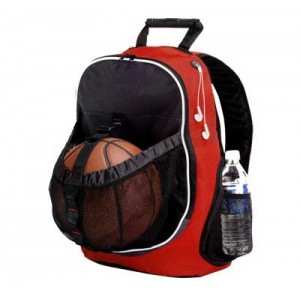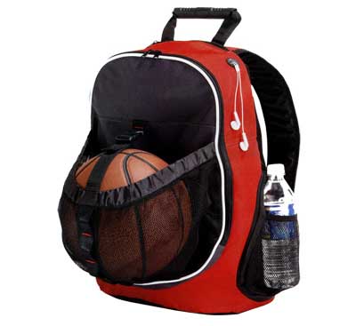 MOCHILA NYLON Y POLIESTER CON DOS COLORES, BOLSA FRONTAL SUPERIOR CON CIERRE Y MALLA, BOLSAS LATERALES Y BOLSA PARA CELULAR EN ASA.