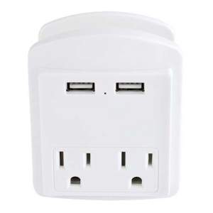 Descripción: MULTI CONTACTO VALGE (Adaptador de pared con 2 enchufes y 2 puertos USB.)