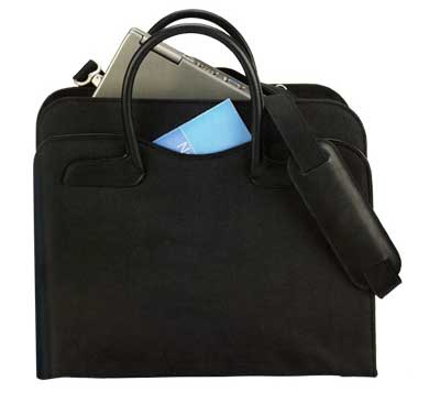 PORTA LAP TOP NYLON Y POLIESTER CON UN COLOR, AGARRADERAS DELGADAS TIPO PIEL,BOLSA DELANTERA PARA DOCUMENTOS.