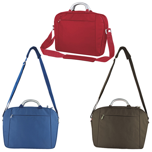Descripción: PORTA LAPTOP FLORENCIA (Bolsa frontal con compartimentos para bolígrafos, celular y tarjetas. Bolsa principal con 3 compartimentos para accesorios y un espacio acojinado para laptop de 15". Con asa metálica.)