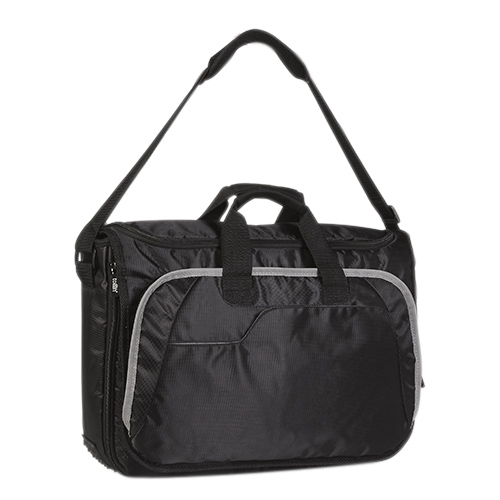 Descripción: PORTAFOLIO BRONI (Bolsa principal con compartimento para laptop �de 15" y bolsas de malla. Bolsa frontal con organizador de documentos, cierre interior y gancho para llaves. Agarradera posterior para colgar en trolley. Broches magnéticos. Incluye correa ajustable.)