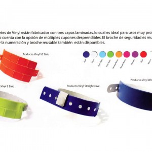 EL BRAZALETE DE VINYL ESTÁN CUBIERTOS Y FABRICADOS CON TRES CAPAS LAMINADAS, LO CUAL HACE MÁS PROLONGADO EL USO, ESTE DISEÑO CUENTA CON LA OPCIÓN DE CUPONES DESPRENDIBLES, Y BROCHE REUSABLE.