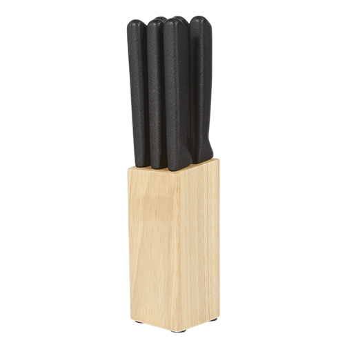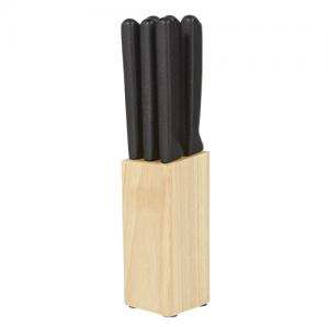 Descripción: SET DE CUCHILLOS CORVI (Incluye 6 cuchillos y base de madera.)