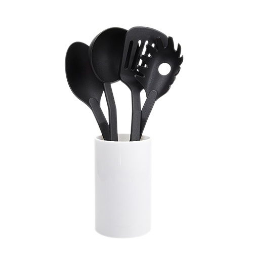 Descripción: SET DE UTENSILIOS MERAN (Incluye base y 4 utensilios de cocina: cuchara, cucharón, pala y cuchara de pasta.)