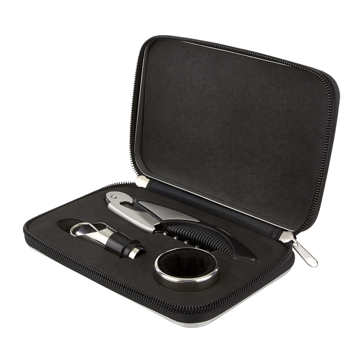 | Descripción: SET PARA VINOS ARENI (Estuche con boquilla, arillo y sacacorchos con navaja.) |
